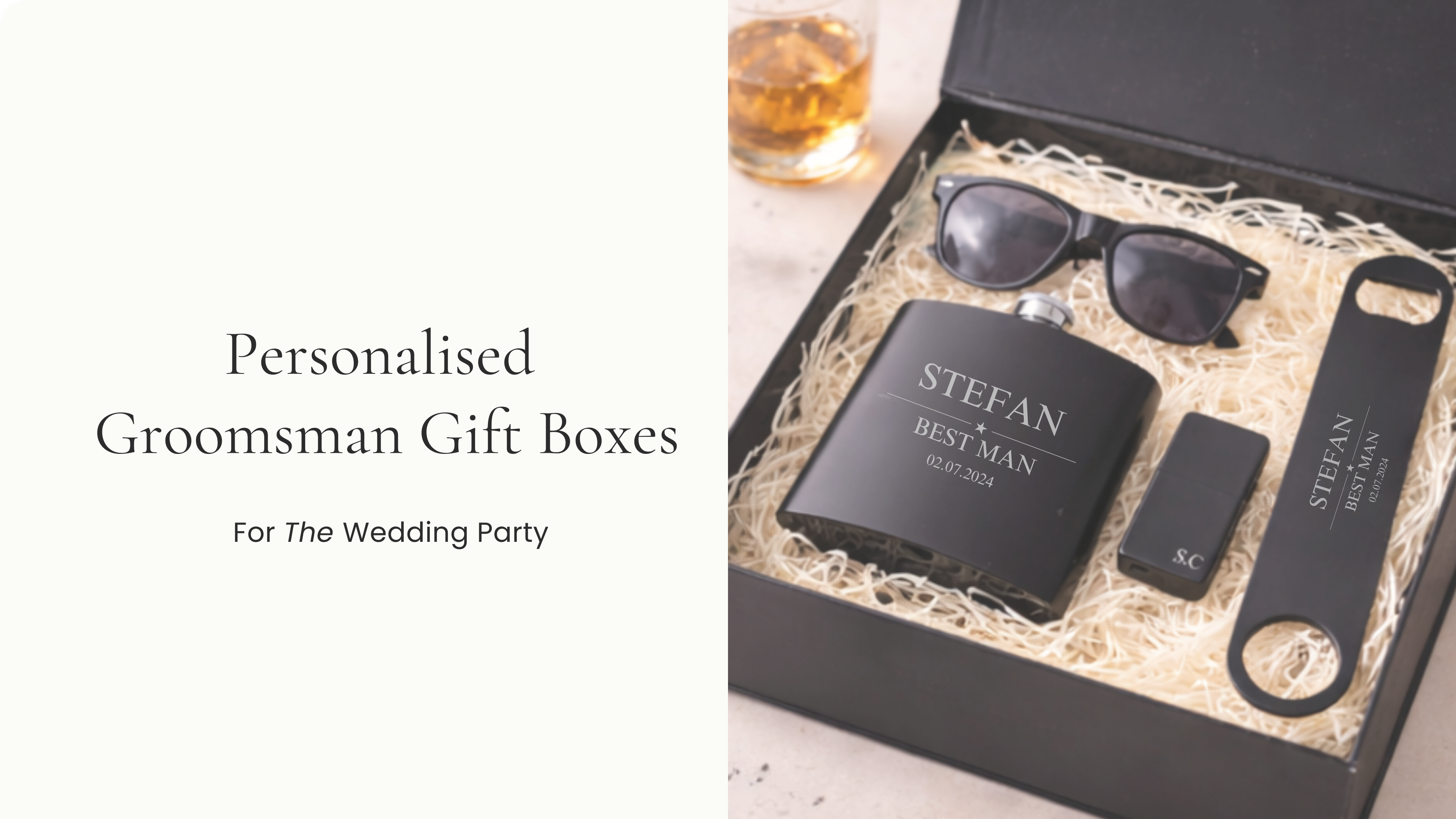 Personalised Groomsman Proposal Gift Box – Best Man Whisky Glass & Hip Flask Set